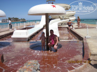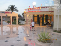Территория огромная, отличная, зеленая!Три пляжа, один из них с кораллами и рыбками. На пляже есть водная горка и бары с напитками, пиццей, гамбургерами, картошкой фри, сосисками.