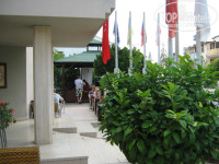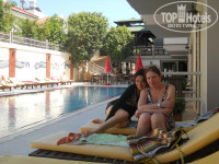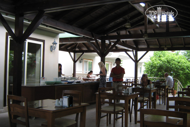 Были в отеле с 16 по23 мая.Очень понравился отель,хорошее отношение,хорошее питание-никто не смотрел косо сколько накладываешь в тарелку или наливаешь в бокал.Мяса немного,но всегда,один раз за неделю была рыба.Гарниры вкусные.Не было зелени,но остальные овощи-в нарезке или в салате вполне устраивали,чувствовалось старание повара.Номера хорошие.У нас номер на троих был с кроватью,вроде попадаются с доп.местом в виде кресла.Очень понравился хамам при отеле.Взяли тут же курс массажа,полезно,недорого и никуда ездить не надо.Дома некогда,а здесь было в самый раз.Погода в мае то дождик,то солнце,не очень жарко,но зато на пляже свободно,на улицах нетесно.На дискотеке же, наверно как и в сезон, народу тьма.Аура и другие диско недалеко,туда нас отвели из отеля бармен Алекс и Эрсин,обратно мы бежали сами))нам бы что русское,чтоб душа развернулась,а не кислота эта).Сходили в понедельник на овощной рынок-за площадью с часами,а во вторник на тряпочный(по направлению к морю и направо).Все недешево,но дешевле чуть,чем в магазинах.Море очень красивое,чистое,было прохладное,но все купались.Все понравилось.