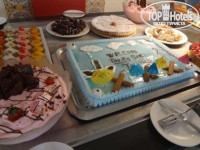 Еда - тоже без претензий. Многообразная. Огромное кол-во тортов, пирожных,похожих на произведения искусства. Салаты, гарниры, как обычно. Всегда есть рыба. Часто были и кальмары в кляре и еще что-то морское вообщем. Мясо и кура тоже есть всегда. По питанию без вопросов. Из напитков - кола, фанта, вода, белое, красное вино и пиво. Кстати бар есть и у бассейна. + в перерывах между завтраками, обедами. ужинами- есть snaks - это пицца, картошка фри и прочий перекус.