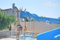 Территория отеля не очень большая, но уютная. Есть и детская площадка, качели, цветочки засажены возле дорожки, очень все аккуратно. Бассейн 1,4 метра глубиной. Есть детский бассейн. Наши дети плавали в большом бассейне в кругах. Есть горка одна.