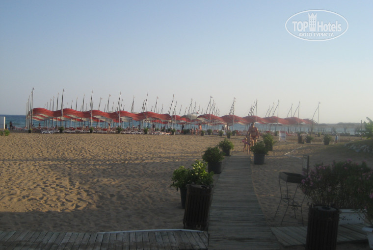 В мае-июне отдыхала в Аланье(п.Авсалар) в 4 звезды,так там лучше чем в этой так называемой 5.Отель далеко не пятерка,твердая четверка.Тезтур расторгает договор с этим отелеми и некоторых отдыхающих заселяли в три отеля.Некоторых заселяли в подвал без окон.Правда потом им давали бонус, они могли посетить не один ресторан , а 2-4 раза по системе Алякарт.Мы отдыхали в Гран Перл с 25 июня-по 6 июля, у нас этих проблем не было.Территории в принципе нет совсем, куда не пойди везде бассейн.Зелени очень мало, все выложено плиткой,она на солнце накаляется и становится очень жарко (как летом в городе, от асфальта).Дорога на пляж по такой жаре очень утомительна,на море утром можно дойти,а вот обратно уже тяжело.В этом отеле один плюс-это шикарный пляж,очень плавный вход(подходит для деток).Шезлонги свободные есть всегда.Паровозик катается туда,обратно но с 12,30 у него обед (и если ты задержался на пляже до этоого времени,иди пешком в самую жару до отеля).Мой муж ститал сколько шагов от мостика до входа на территорию отеля,так вот их 590 (он у меня высокий и длинноногий).По дороге на пляж идешь мимо стройки,какой-то свалки и парников,просто ужас.От речки-вонючки идет запах сточных вод,особенно когда стихает ветер.В речке живут черепахи,рыби и утки с утятами. Ночью в этой речке начинается хор лягушек, они всю ночь поют.На другой стороне речки находится очень красивый отель,в нем анимация бывала до 3 часов ночи.Ранним утром пели петухи в этом отеле.Короче-не берите номера выходящие на речку, если хотите спать спокойно.Номер у нас был 6314,очень уютный(все новое),Убирают номера очень плохо,даже за чаевые.Полы моют не водой, а какой-то желтой жидкостью(потом ноги от нее желтые).Ванна поддтекала всегда.Сейф в номере стоит 3$ в сутки.Питание разнообразное,из фруктов были (апельсины,грейпфруты,сливы,абрикосы,сливы).Больше туда не поеду.