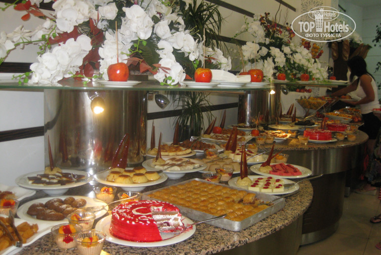 Особенно стоит отметить еду, арбузы, дыни, апельсины, грейпфруты, папайя кажлый день три раза в сутки, реже были нектарины, сливы, персики. мясо, курица, все в изобилии. Подкачал только пляж: 10 *10 кв.м и куча народу, галечный, до него 200 метров. в ванной даже ушные палочки есть и висит объявление: если вы хотите поменять полотенце, то оставьте его на полу. каждый вечер развлекательные программы, в общем анимация на уровне в течение всего дня: аквааэробика, водное поло, дартс, танцпол после обеда, мини дискотека для детей, веселые программы для взрослых. очень много турков, поляков (больше , чем русских). я была с сыном 13 лет. мы каждый день ходили в тренажерный зал, сауну, а вот на пляже не понравился вход в море (без спецобуви очень тяжело)