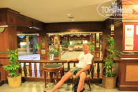 Заехали в отель в 10 часов утра. На ресепшн распределение номеров прошло буквально за 10минут и нас поселили в номер 514. До этого мы два раза отдыхали в отеле Cozy beach и есть с чем сравнивать...( в cozy конечно почище и поприятнее..) Номера достаточно просторные.Балконов нет.По состоянию номера не очень: краска на стенах о потолке с подтеками и потертостью (очень даже приличной))Мебель старенькая.Постельное белье достаточно свежее и белоснежное, хорошо заправлено.Полотенца поподались с пятнами, застиранные, а пляжные были даже немного рванные (пара штук за все время попалось).На полу кафель и ламинат.В ванной сантехника на троечку.. Ну вот мы и заселились!! )))На стенах в номере заметили чьи то экскрименты,мелкие!!! Подумали что раньше наверное были тараканы их потравили ну а стены просто давно не красили.... Помылись и легли отдохнуть с дороги.Через какое то время я заметил что кто то кусает за ногу, как камар .Но визуально ни чего не увидел)) И ткт подскакивает супруга с возглосом: КТО ЭТО? указывая на подушку на которой находятся какие то букашки!! Приболее детальном изучении мы выесняем что это КЛОПИКИ!!!!)))) Давим штук пять , ложим трупики в салфетку и идем на ресепшн.. На ресепшн были русские туристы проживающие в этом отеле. Я интересуюсь есть ли у кого в номере клопы? На что все заявляют что нету...Тогда мы с супругой берем 200батт и суем администратору и просим дать нам номер без ЖИВНОСТИ:-))Без молейших разбирательств нам дали номер 520. Мы в недоумении, ведь номер находится совсем рядом. Спрашиваем есть ли там клопы на что нам с улыбкой заверяют что нет.Верим тайцам на слово и идем в новый номер..)) Номер по состоянию такой же(фото выложил). Но клопов до конца отдыха мы так больше и не видели!! Удивительно!Правда шумел кондей и на второй день я об этом сказал уборщице.Реакция была моментальная.Через две минуты у нас уже был масте и все устранил..Вот так может подействовали наши 200 батт? Но нам всегда улыбались и каждый день меняли полотенца)) Кухня в отеле достаточно нормальная. Наедались вдоволь. Приветливый администратор . Отдых прошел замечательно.До пирса и обратно мы ходили пешком (полезно) По времени примерно минут 30. Все рядом.Ведь это центр. Я считаю отелю не хватает косметического ремонта!! Но как нам сказал отельный гид это проблема всех отелей в центре.Так как отели строились давно.Так что нормальный отель. Ведь вы приехали не в номере сидеть..Главное чтоб по вам ни кто не ползал и не кусал;-))))