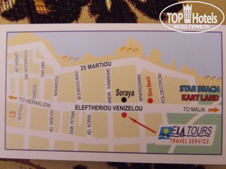 Дискотеки находятся далековато от отеля, надо идти вверх по набережной или центральной улице к Ираклиону, минут 30-40 после 12 часов. Мы так и не дошли. Кстати там же на центр улице есть отличный магазин Спар, где тоже можно купить и масло олив и халву и все остальное подешевле, чем в магазинах местных! Самое дешевое мыло я покупала 5 кусков за 3,5 евро! магазин находится на стороне ресторана дерби и вверх к Ираклиону. А если идти в другую сторону, то там есть рынок, не доходя пляжа Стар Бич!