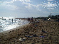 До пляжа придется прогуляться минут 5, или доехать за 2 минуты на шаттле (это трактор с прицепом оборудованным сиденьями с фирменным наименованием Orfeus Park Hotel). Пляж собственный с навесом, пластиковыми лежаками, матрацами, а пляжные полотенца в отеле дают под запись в ЛЮБОМ количестве! Пляж сам песчаный и вход в море хороший. Есть, конечно, и камушки, но они вам не помешают. Там же можно покататься за дополнительную плату на банане, скутере, полетать на парашюте. На пляже есть бар-ресторан, в котором можно пообедать, не уходя с пляжа и множество прохладительных напитков с 10:00.