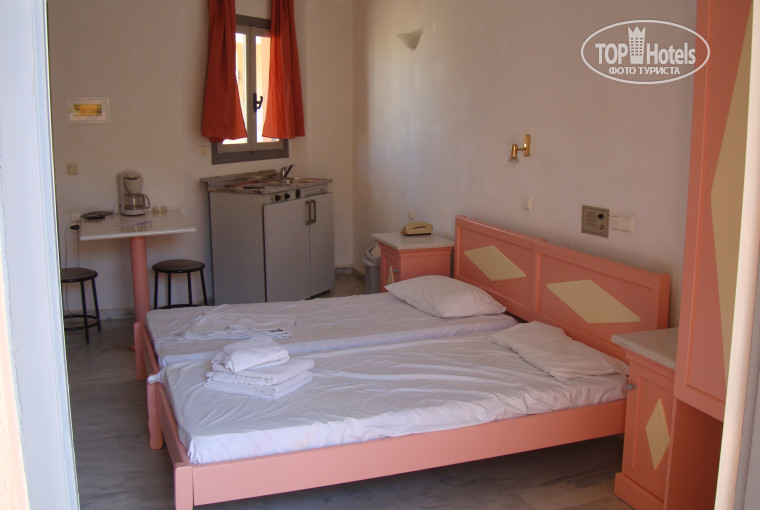 Прибыли в отель поздно-поздно ночью! Дорога от Ираклиона до отеля действительно была долгой...2,5-3 часа...на это сразу настраивайтесь =)) по дороге гид рассказывала общую информацию об острове Крит. После рассказа слушали греческую музыку. На ресепшн нас всех организованно распределили по номерам: дали заполнить анкету, выдали ключ, проводили до двери номера! (у нас был двухместный) (в отеле 9 корпусов!) Когда мы шли ночью с чемоданами - ожидали, что поселят в плохой номер, где что-то обязательно не будет работать =)) но когда зашли - были приятно удивлены! Номер был просторный, розовый как в рекламном ролике на сайте! Была ванная, а не дырка в полу! Да! Шторки нет, но она и НЕ НУЖНА! Дверь по желанию закрывается на замок. Был фен. В номере находился телевизор, холодильник, плита, кондиционер (мы не платили - он не работал). В шкафчике лежала посуда. На кроватях 6 полотенец (полотенца просто прелесть! Впитывают влагу за секунду!), чистые простыни. Убирались у нас каждый день! Выкидывали мусор, добавляли туалетную бумагу, белье поменяли дня через 3...полотенца у нас были в хорошем состоянии, но если вам захочется, что бы их поменяли, бросьте на пол. Мы чаевые не оставляли, но номер все равно убирали. (В номере есть шампунь. Мыло маленькое, но мы и так привезли своё). В номере ночью и днем - душно, мы устраивали сквозняк =) открывали 1 дверь балкона и окно (на противоположной стороне). Я даже замерзала ночью несколько раз =)