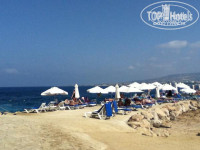 Пляж: пляж неширокий, есть песчаная часть, есть каменная, где все очень любят лежать. Места для купания мне очень понравились: есть такой лягушатник (я ростом 1.62, мне было по горло в глубокой части), там песчаное дно и волны поменьше. И можно по лесенке спуститься в открытое море, там уже простор) Очень часто бывают волны, и вешают 2 красных флага (то есть купаться нельзя), но самые отважные купаются и в волнах, я тоже попробовала - просто фантастика! Народу мало, можно качаться на волнах, они просто выбрасывают к берегу) Однако это для тех, кто хорошо плавает, потому что волны очень сильные, а насчет спасателей я не уверена.