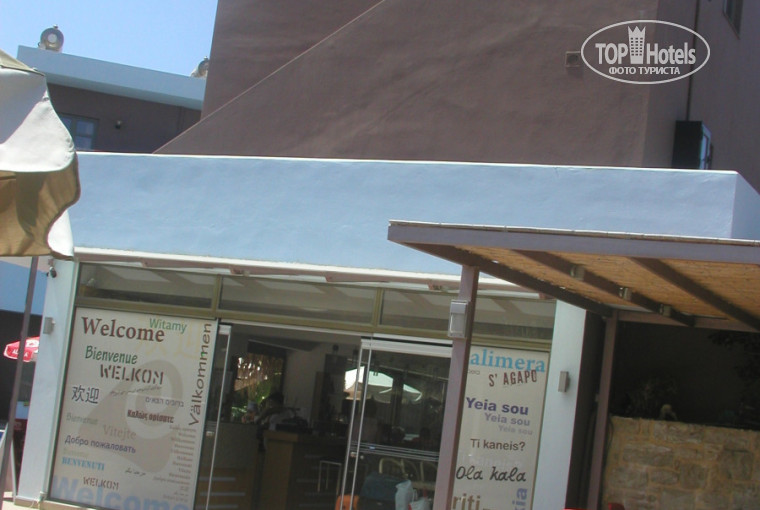 Ещё что касается 401. Холодильник не работал, ванна – кошмар! Потому что ванны как таковой не было, а был поддончик, но довольно большой, даже шторки не было и не было того, на что её можно было бы повесить, из-за чего вся вода, когда моешься, выливалась на пол, и образовывалась огромная лужа! Шкаф – это просто смех! Сделан в стене, без света и всего с двумя вешалками! Хорошо хоть стул был – один, и трюмо. Ещё одна особенность этого отеля – туалетную бумагу нельзя кидать в унитаз, а только в ведро, а точнее в ведёрочко (такое маленькое, что слов нет). Да – ещё был ЖК-телевизор, правда, каналы только англоязычные и на греческом языке.