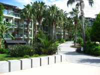 .Территория отеля не большая,но зеленая,чистая,ухоженная у скамеек стоят корзины для грязкой посуды,много цветов,на территории отеля ростут бананы,но много ступенек и большая горка по подъему к основному корпусу отеля..