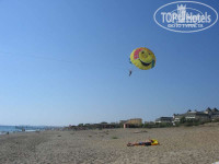 5. Пляж. Не ухоженный, но просторный, всегда хватает лежаков и можно отодвинуть лежак в любое место. Зонтики, шезлонги бесплатно.Матрасы-2евро. На пляже есть бар - пиво, напитки, до обеда картошка фри. Есть туалет. Поблизости нет отелей, поэтому пляж выглядит пустынно. Но скоро построят рядышком по обе стороны от отеля другие отели, и я думаю, все станет цивилизованно. Вход в море в принципе приличный, в каменной береговой плите прорублен вход довольно-таки широкий, проблем не было. Правда иногда заплывая далеко, неожиданно можно напороться на глыбы в воде, но зная эту особенность и запомнив это место, можно купаться совершенно свободно.