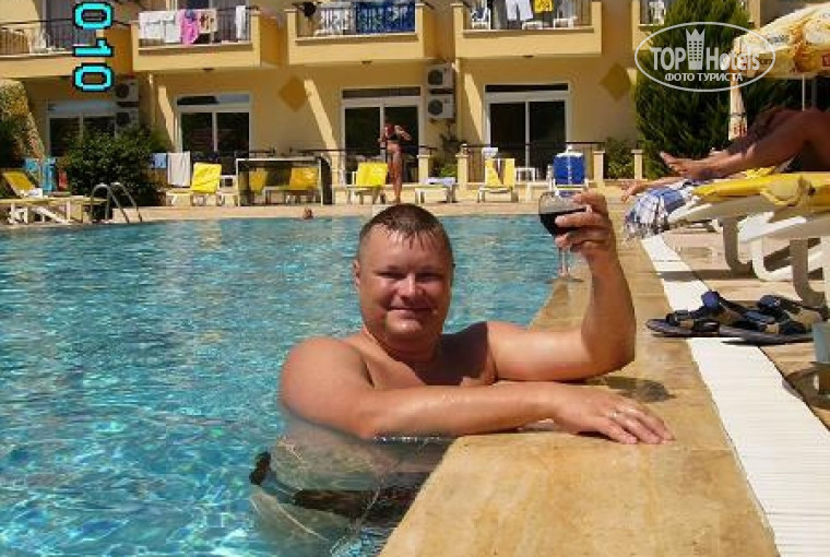 Когда брали туда путёвку (ехали с женой в Турцию в первый раз) нам честно сказали, что отель небольшой чистенький, питание на должном уровне, хотя никаких особых изысков нет, для размещения взяли бунгало, нас это вполне устраивало, кондиционер пахал исправно, без сбоев, плюсом было то, что при выходе из бунгало небольшая площадоьчка с двумя стульчиками и столиком, можно спокойно посидеть, покурить, в окружении цветов, близко к бассейну, нам понравилось