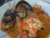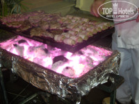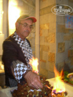 Шеф-повар чудо. Такие вкусняшки готовил. За 15 дней отдыха чего только не попробовали: мясо на гриле, шашлыки, курица, рыба, осьминоги в кляре, тушеные, мидии, баранина, строганина, креветки. На гарнир картошка, отварная цветная капуста, помидоры гриль, фаршированные помидоры и перцы. Ребенок тоже всегда находил то, что хотелось ему поесть. Из фруктов: апельсины, арбуз, дыня. Из сладкого два- три вида вроде было что-то всегда. Мы просто не любители сладостей, поэтому не могу сказать точно. Из спиртного мне очень понравилось белое вино. Оно всегда было охлажденное и очень приятно было его пить. Муж говорит, что очень пиво хорошее и понравился их местной коньяк (или бренди). Поверьте то, что шеф-повар пытался объяснить, что не берите сразу много, это не от того, что им жалко, всегда можно подойти за добавкой, а просто чтобы все это не шло на помойку. Нашим же надо сразу 3-4 тарелки всего и побольше. Даже за 15 минут до закрытия столовой, выносили горячие блюда. Единственный минус, это расположение тарелок действительно на нижних полках стойки с едой.