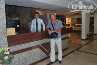 Прибыли утром в районе 7,размещение только в 14,т.к. номеров свободных не было,хотя муж предлагал $. Нам предложили идти на завтрак,чемоданы оставили на ресепшен,взяли купальники и пошли в "4" на завтрак. До нее буквально через скверик 2 минуты ходьбы,она на берегу моря. После завтрака спустились в морю,лежаки были,до 9 часов можно вполне спокойно найти лежак.