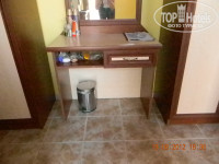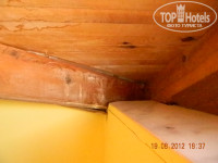 Долетели отлично, с комфортом, спасибо авиакомпании Трансаэро! По прилёту нас доставили в отель около 16.00. Заселение было долгим и утомительным, около часа ждали в невыносимо душном холле. Наконец нам вручили ключ от номера 717. В итоге придя туда, мы поняли, что будем жить за пределами отеля (а это значит, что случись с нами что-либо, за нас никто не в ответе), но это было только начало. Когда мы зашли в наши апартаменты, то были в ужасе. В номере было: две кровати, два шкафа, сейф, телевизор, трюмо, кондиционер, балкон и ванная комната. НО… в номере не было: ни одного стула, телевизор вовсе не показывал, его можно было только слушать, сейф периодически выключался и не срабатывал, окон и занавесок там тоже не было, было только две малюсенькие форточки и дверь на балкон (но в них были матовые, ничего не просвещающие стёкла), из освещения была одна настенная лампа и две бра, висевшие над кроватями, потолка там тоже не было, только деревянная крыша, состоящая из огромных щелей и протечек, везде свисала пыль и паутина, телефона в номере тоже не было. Ванная…это отдельная песня. В душевой кабине дверки были сломаны и не закрывались, сток для воды был засорён так, что вода всегда стояла в поддоне кабинки, холодной воды практически не было, особенно вечером, из освещения, только одна маленькая лампочка над зеркалом.