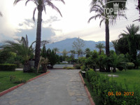 Территория очень ухоженная, зеленая, травка на газоне шелковистая,, растительность самая разнообразная и пальмы и хвойные и лимоны с гранатами.