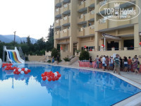 Добрый день. Хотелось бы тоже написать о своем отдыхе в отеле Сириус. Туда я ездила отдыхать с ребенком в начале сентября. И в целом отдыхом я осталась очень довольна. Нам очень повезло с погодой- было не очень жарко, но и не холодно. Как это бывает в конце сентября...для загара в самый раз. Море тоже было чистое и теплое. Пляж у отеля галечный, но это даже плюс, т.к. у песчаных пляжей есть огромный недостаток...мутная вода в море. Пляж большой, всегда можно найти место под солнышком) Правда, до него действительно нужно идти от отеля пару минут, но такая прогулка до моря нам совсем не казалась утомительной. Про пляж еще могу сказать, что он очень чистый, постоянно убирается. Там также предусмотрен бар (без алкогольных напитков, опять таки плюс) и душ. Особо хочется сказать про природу- в поселке Текирова будто какая-то особая атмосфера, в Сириусе тихо и спокойно, настоящий релакс и полной расслабление. Кстати, очень рекомендую посетить хамам и пройти курс лечебного массажа. Это было отличным довершением нашего чудо-отдыха. Питание в отеле понравилось, и за две недели, проведенные в отеле, нам совсем не надоело. Кухня угодила даже моему маленькому привереде, который, кстати говоря, не вылезал из маленького бассейна, лишь иногда делав быстрый "забег" в море. А от моря он был в полном восторге, впрочем, как и я!!! На мини-диско (детская дискотека) и в мини-клубе он познакомился со всеми детьми отеля, так что во время отдыха ему было не до скуки, и компания у детей образовалась большая и шумная. О номере скажу только, что он тянет на все пять звезд. Так что в отеле мы чувствовали себя прекрасно, все продумано для людей, удобно и комфортно. Еще мы были очень рады, что застали Турецкую ночь. Это был один из самый запоминающихся дней в отеле. Уже после обеда начались приготовления к празднику, а после отель было не узнать- вместо лежаков у бассейна накрыли столы с бело-красными скатертями. На улице был организован шведский стол. Повсюду шары, все в красно-белом цвете. Играла турецкая народная музыка. В общем,старались нас приучать к турецким традициям и обычаям. За это огромное спасибо администрации отеля. Блюда турецкой кухни поражали разнообразием, и было много настоящих турецких сладостей. После ужина, как обычно, провели мини-диско, к которому мой ребенок был просто не равнодушен, а затем в 9 вечера началось самое интересное- приехала группа турецких танцоров, ребята показывали народные турецкие танцы.Все было очень интересно и зрелищно. Впечатлений осталось море. Ребенок был просто счастлив, да и я не плохо загорела. Так что советую этот отель всем, в особенности, людям семейным. Хочется еще раз сказать спасибо отелю и нашему туроператору за отличный отдых и массу положительных эмоций.