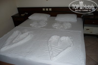 Вид из окна в отеле может быть либо на бассейн и другие отельчики, либо на оживленную улицу и горы вдали. Нам дали вид на улицу и горы (фото прилагаю). Для нас было красиво и даже приятнее выходить по вечерам на балкончик и смотреть на горы, чем на бассейн,…но для людей с детишками или чутко спящих этот вариант не хорош, так как улица очень оживленная и шумная, спать будет непросто. Мебель в нашем номере была старая, дверца от сломанного шкафа стояла рядом со шкафом ). Санузел неплохой, сантехника вся чистенькая, ванная порадовала (фото прилагаю), мы не хотели душ. Удивительно чистая вода из под крана! Я привыкшая к фильтрованной воде…на вкус не воспринимаю никакую другую, - здесь была удивлена! Эту воду можно пить! Подушки пахли чем-то неприятным…хотя мужу так не показалось. Но я вежливо попросила их заменить, оставив чаевые горничной, после чего она не только поменяла нам подушки но и надела семейную простынь на две соединенные кровати, дала одно семейное покрывало и даже изобразила вот такую красоту из полотенец на кровати (фото прилагаю), за что ей отдельное спасибо! Тэшекюр эдерим.