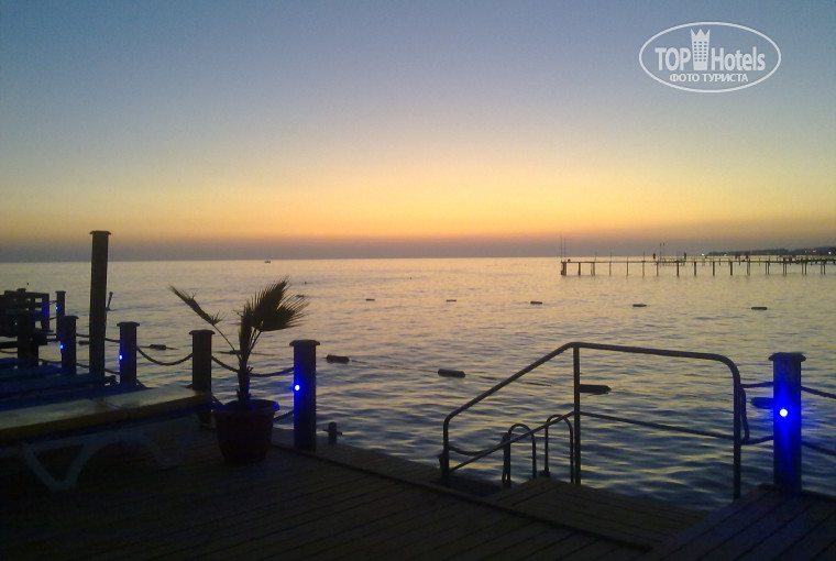 Море отличное.несколько дней штормило,немного было грязное,но 1-2 дня. Вход в море мелкая галька,есть немного крупнее,но нормально..Лежаки занимали в 7 утра,были в шоке,что половина уже в это время было занято..Пляж чистый. На море Есть горка ,классная! Сразу море сильно соленое,глаза разьедает,но потом привыкаешь. На пляже проводят гимнастику,дартс,степ-аэробику,восточный танцы (правда те движения,которые показывают аниматоры,трудно назвать восточными танцами).Маленькому ребенку брали с собой маленький бассейн,игрушки,было удобно на пляже.