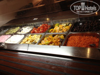 Из еды мы брали только завтраки, как оказалось не зря. Потому что отзывы об обедах и ужинах не положительные (от гостей отдыхавших с нами). На завтраке есть все, что и должно быть: сухие завтраки, яйца двух видов,бекон, сосиски, помидоры, огурцы, сыр, ветчина, масло. маргарин,йогурты, грейпфрут, апельсин и арбуз. Наивкуснейшая выпечка и джем четырех видов. Кофе чай, какао, соки. По-моему все стандартно. Бегали два котенка, но на столы не лезли, ждали добрых бабушек))).