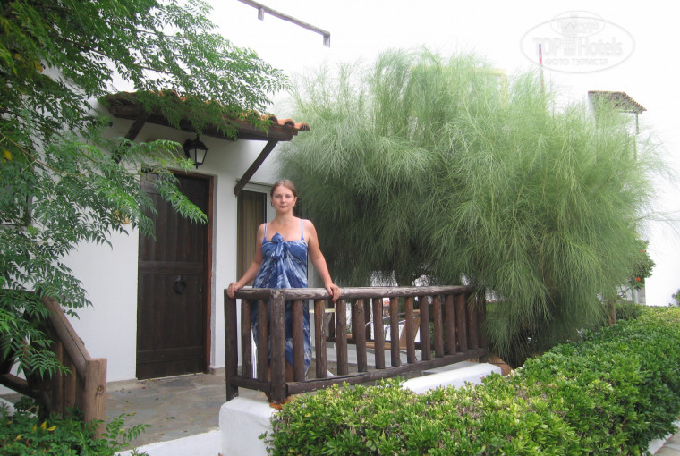 Отель хороший, соответствует своим 4-м звездам. Территория отеля небольшая, но ухоженная: растут лимоны, апельсины, бананы, гранаты, розы, очень красиво и зелено. Номерной фонд представлен 2 этажными бунгало (домики). Совет, если есть возможность, лучше выбирать номер на 2-м этаже. Также есть номера в главном корпусе, номера чуть больше и есть ЖК телевизор, но за номер в головном корпусе с нас попросили доплату 10 евро в сутки, мы отказались и выбрали бунгало на 2-м этаже. Номер небольшой, но уютный есть все необходимое. В ванной комнате расположено очень милое окошко, сама ванная комната просторная. Питание: завтраки стандартные, а ужины достаточно разнообразные, по воскресеньям на завтрак дают шампанское! Рядом с отелем много таверн, нам нравилась справа от отеля «Камелот», если захочется разнообразия от питания отеля, можно сходить туда, готовили очень вкусно. Пляж находится через дорогу, мы ходили через отель Alexander beach, времени занимает не более 5 минут, пляж неширокий, песок, заход в море неглубокий 50-60 метров от берега по колено, потом постепенно глубина увеличивается.