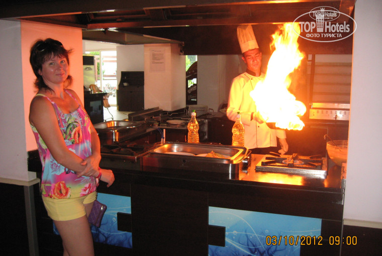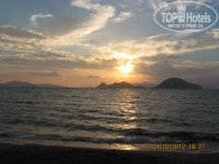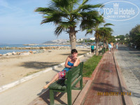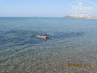 Отдыхали в отеле со 2-го по 12-е октября.Номер дали 2207 с балконом на улицу баров,начитавшись отзывов мы ждали громкой музыки,шума и пение мулы,но если честно мы этого всего даже не замечали:)Отель:территория даже очень маленькая,развлечений нет никаких,вечером в отеле скучно. Питание:если сравнивать с другими отелями где мы были-хуже,но голодными не ходили, всегда был не большой выбор- мясо,рыба,разные салаты,сладости,утром очень вкусный омлет с овощами,были сытые и довольные:)Бар работал один, выпивки и напитков хватало:) Пляж:Лежаки занимали с 8-ми утра,так-как после 10 мест можно было не найти.Территория пляжа не очень чистая,очень много собак они купаются в море,лежат на песочке и там же писают и какают:)но мы любим собак поэтому они нас не напрягали,но были и возмущённые туристы:)Море это сказка очень чистое,тёплое и красивое,вид с пляжа очень красивый.Сам городок Тургутрейс не большой,всё очень близко,много супермаркетов,лавок с сувенирами.Ездили сами в Бодрум(5 лир проезд в одну сторону)Экскурсии брали в местном агентстве у Вики.(на углу отеля от моря)С погодой нам повезло.Температура днём выше 30,а вечером 26(тёплые вещи не понадобились)море26-24,очень тёплое,дождей не было.