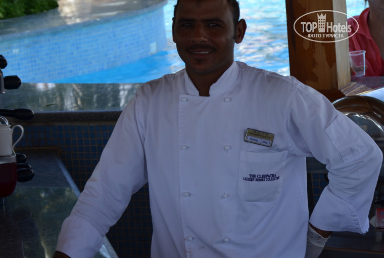 Привет всем,кто хочет ехать в Cleopatra Luxury Resort 5*.Набирайте хорошего настроения и вперед.Отель красивый.Кто был в Египте-тот может сравнить с немногими по архитектуре отелями.Продумано правильно расположение корпусов и зон активного досуга(одно другому не мешает).Есть корпуса в тихой зоне: и бассеин и бар организованы для покоя.Ходили туда купаться и загарать с дочькой( 5 лет)-выспались.В зоне центрального бассеина движение бесконечное,музыка целый день,хороший бар.Много иностранцев,но к"русским" отношение отличное.Персонал доброжелательный,по-русски говорят многие(или хотябы пробуют понимать) Ни разу не услышал от персонала негатив(не то,что хамства) Улыбаются все:от дворника до менеджера,а еще и работают сутки напролет. Имена всех нас запомнили в первый же день.Аниматоры успевают завести народ на разных языках и в любое время.Вечером шоу неплохие,даже когда поставлены силами аниматоров. Отдельно хотел бы отметить барменов и повара в бассеине(именно в бассеине бар посередине) Ибрагим-повар готовит снэки (картошка-фри,хотдоги и т.д.),а утром в ресторане-омлет,а вечером -гриль: мясо или море продукты. А у бармена Саида "батарейки" вообще не садятся-все бегом и со смешочками.Официанты в главном ресторане говорят на арабском,английском,итальянском,русском и немецком языках достаточно для понимания. Мохамед(имея ввиду трех Мохамедов в главном ресторане) на второй день!..знали что мы пьем и только уточняли. А самое главное, что персонал не клянчил деньги за отношение или услугу.Все туристы сталкивались наверное на массовых курортах со скрытыми вымагательствами "ван доллар".Не зню,как добились этого управляющие или владельцы.Во время нашего пребывания открылись магазинчики(возле итальянского реторанчика),в одном из них работает молодой парень - Рами.Идите к нему и смело покупайта футболочки,тапочки и т.п. обязательно торгуйтесь-получите удовольствие.Товары по цене такой же как в торговом центре Шарм-Эль-Шейха.