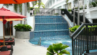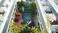 Выбирали отель по отзывам на этом сайте- искали на окраине Патонга- все отзывы хорошие, рейтинг зашкаливает. Уже после того, как купили отель, обратили внимание, что все отзывы 2-х летней давности, уже и хозяин поменялся. Стали искать на других сайтах- на буржуйских нашли много и не все были на 5- кому-то было шумно, у кого-то в номере стоял сильный запах канализации и т.д. Если это действительно так, то будем считать, что нам повезло. Отличный номер метров 40 с видом на внутренний двор (бассейн). Хотя заказывали стандарт 32 метра и были наслышаны, что русских селят над хард-рок кафе. Депозит 5000 бат, причем могут взять и долларах, но возвращают в батах- немного теряешь на курсах. Завтраки хорошие. Русских совсем мало, европейцы и азиаты. Территории как таковой нет, все внутреннее пространство занимают бассейн и джакузи (каскадом на 2 и 3 этажах). Также есть бассей на крыше. В целом очень довольны. Отель хотя и большой, но никакой толкотни не наблюдается. Из минусов (или плюсов)- нет русского канала, а ДВД-проигрыватель не читает AVI. USD- порта в телевизоре нет.
