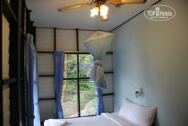 Жил в бунгало, напомнило сторожку с кондиционером и большой кроватью.