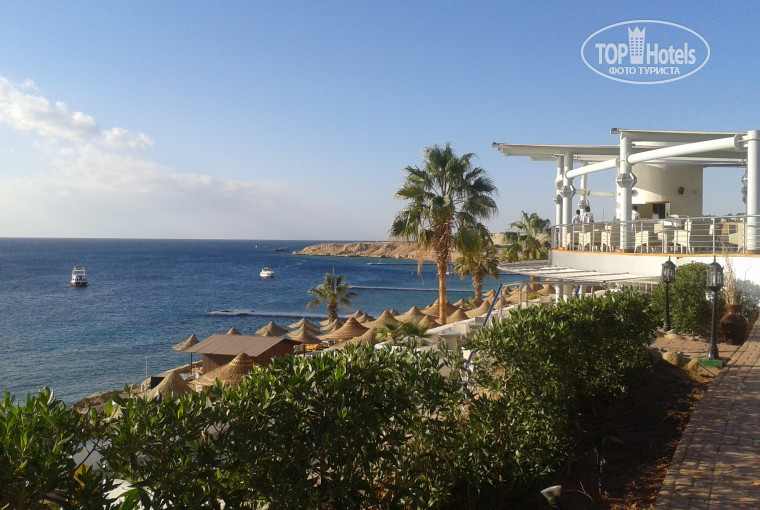 Территория отеля удивила- всё зеленое, красивое, каждый день в 6 утра всё поливают. Можно пойти просто погулять по территории отеля и спустя пять минут обнаружить,что прошло полчаса. Очень красивые бассейны, именно красивые! Два небольших- с подогревом, один- без. Бар у главного бассейна прекрасный! Возле моря в несколько уровней располагается пляж, места найти можно всегда. Несколько понтонов, заходить удобно. Жаль только, рыбок мало было. На пляже чисто.