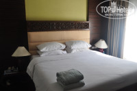 Сам номер не очень велик, но всё чисто. Единственный недостаток это ступенька при входе в ванную комнату. Днем всё ничего, а вот ночью можно навернутся. Да, и сам кондиционер был немного шумноват, ну это не беда. Ну и из минусов: прикроватные лампочки стоят ну очень низко, и освещают только пол. Хотя само освещение довольно разнообразно и имеет несколько режимов. Пол в вилле из кафеля, ну это на любителя, кому-как. Сейф бесплатный,находится в шкафу, работал без проблем. Телевизор плоский, довольно новый,имеет два русских канала - РТР и РТВ (местный русскоязычный канал). Да, в номере два халата и тапочки по топу вьетнамки. Джакузи находится на улице у входа, там же небольшой столик и два стула. Всё огорожено заборчиком около полутора метра.