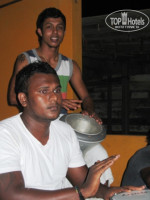 Теперь про еду. Мы покупали тур с завтраками,учитывая мой предыдущий опыт,когда очень много было в меню национальных блюд и я обедал и ужинал в ресторанах. Здесь мы несколько раз обедали и ужинали в ресторане отеля.Во-первых,ресторан очень приятный,он чуть ли не до середины реки,кажется как будто на корабле плывешь,во-вторых,кухня европейская,для нас более привычная.Национальная в меню тоже есть,но немного,если хочется экзотики,то можно заказать.И еще!!!! Там жарят шашлык!!! Я на Шри-Ланке до этого шашлыка нигде не видел.Завтрак очень вкусный,не однообразный. Единственно по чему скучали-сыр,но на Шри-Ланке хорошего сыра нет.
