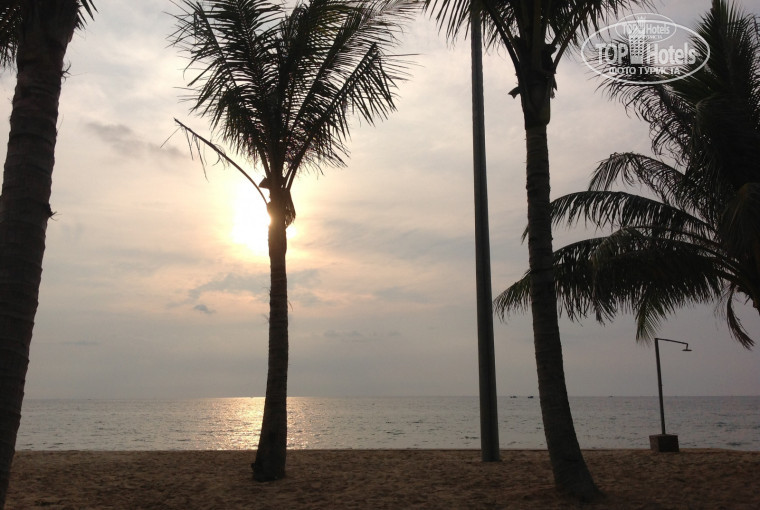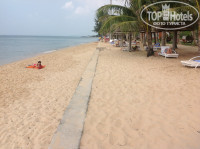 Пляж со ступеньками (см. фото), это удобно, т.к. они отделяют загарающих от гуляющих.