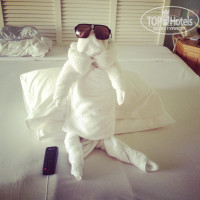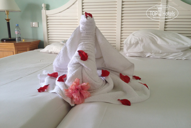 Когда мы зашли в номер, были просто в шоке. Номер был никак не 5*, а 3*. Мебель старая, старый телевизор. плохо работал душ...Мы очень расстроились, попросили заменить номер, но нам отказали словами: "Лучше у нас нет, можно переехать только в главный корпус (Sheraton main) с доплатой 40 доларов за сутки". Мы отказались. Потом познакомились с другими ребятами, посмотрели их номер, он был таким же) На след. день без наших просьб починили душ. Все работало хорошо. Убирались каждый день. Полы мыли только редко, а так нареканий по уборке нет. Каждый день нам делали смешные фигурки из полотенец. 2 бутылки воды в день бесплатно. Кондиционер работал всегда хорошо! Я вообще советую вам на ресепшене просить именно БАРРАКУДУ! Там очень хорошее расположение и своя мини-веранда со стульями и столиком.