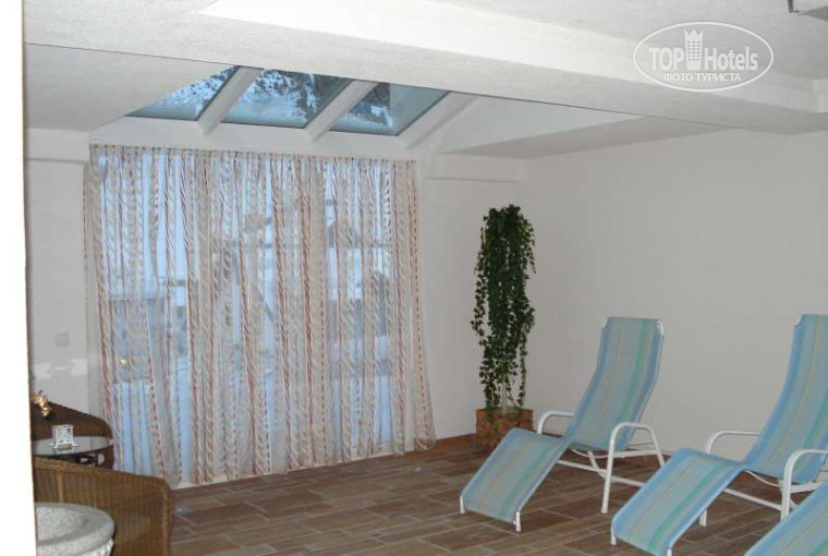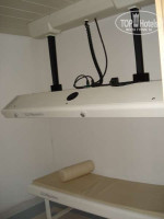 -есть /бесплатно с 16 до 19 часов/ сауна, там же циркулярные души, солярий, комната отдыха.