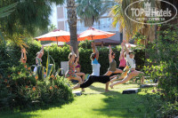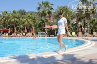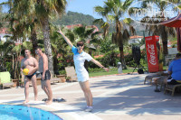 Территория компактная, удобная. Всё, как говорится, под рукой, но в то же время, ничего не мешает. Хотите тишины: вам к бассейну возле мини-клуба. Хотите музыки и движения – добро пожаловать к главному бассейну. Команда аниматоров не даст вам скучать. Для начала : утренняя гимнастика с Катей. Она настоящий гуру фитнеса) Легко и незаметно вы потратите столько энергии, что сможете себе позволить самые разнообразные пироженки. А если посетите еще и степ во второй половине дня, то вообще можете не отказывать себе ни в каких вкусностях. Водное поло с Олесей, волейбол с Тариком – заряд бодрости на целый день. Проверьте свою меткость с Эмре за игрой в боча и в дартс. Позитив вам просто обеспечен. Очень советую посетить уроки танца живота. Даже такое бревно, как я научилась неплохой связке). Катя обучает именно танцу: получите море удовольствия и к тому же вам будет, что продемонстрировать друзьям или мужу. После беллиданса быстренько бежим к основному бассейну, потому что как раз в это время Тарик начинает water gym. Музыка, брызги, смех, отличное настроение и минус съеденные булочки – всё это неполный набор того, что ждет участников. Затем вся команда собирается у главного бассейна и начинаются конкурсы. По окончании, танцуем клубный танец – куда ж без него, и можно полениться. В 14.30 снова начинаются всевозможные развлечения для любителей активного отдыха. Ребята постоянно что-то выдумывают: одеваются в смешные костюмы, веселят и забавляют. Но при этом нет той липкой навязчивости, которую мы так не любим. Всё в меру: не хотите – никто вас за руки тащить не будет, пожелают приятного отдыха и не будут беспокоить. Мини-клуб. Дочке 10 лет, поэтому что происходит в мини-клубе не знаю. Со стороны наблюдала, как детям раскрашивают лица, одевают пиратами и т.д. Детвора при деле, радостно бегут в мини-клуб и это замечательно, ведь пара свободных часов родителям не помешает.