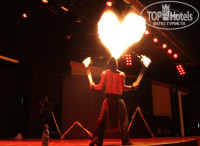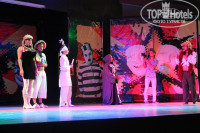 Вечером после мини-диско, очень интересные шоу-программы. Из привозных был цирк (так себе) и экстрим-шоу (понравилась), турецкая ночь. В остальные дни команда аниматоров сами делают различные шоу. Рассказывать подробно не буду - приедите, сами увидете. Одно могу сказать, что так, как выкладывается эта команда, ни водном отеле я не видела. Мистер Гёкан – интертеймент менеджер – настоящий профессионал своего дела: любую ситуацию так обыграть может, что невозможно удержаться от смеха, может и слезу вызвать (номер «Кукла»), как факир - заставит вас затаить дыхание. Дети его просто обожают – залазят на голову в буквальном смысле. Тарик – просто энерджайзер, море обаяния, хорош в любом образе – настоящий шоу-мен. Катюша – 100% отдача всему, что делает. Звёздочка, которая светится изнутри и излучает такую энергию, заряжает таким позитивом, что глядя на неё хочется жить и творить. Джан, Олеся, Эмре, Езлем – обо всех можно сказать много хорошего, но зачем говорить? Приезжайте – всё сами увидите!)