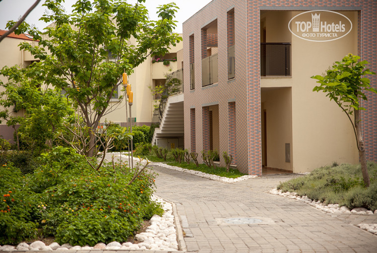 У отеля достаточно большая и красивая территория - ухоженная, зеленая, чистая. Приветливый персонал, уборка в номере надлежащего качества. Пять (кажется)) бассейнов на любой вкус -- детские и взрослые , спокойные и с горками, на свежем воздухе и один крытый. Мы с мужем отлично проводили время!