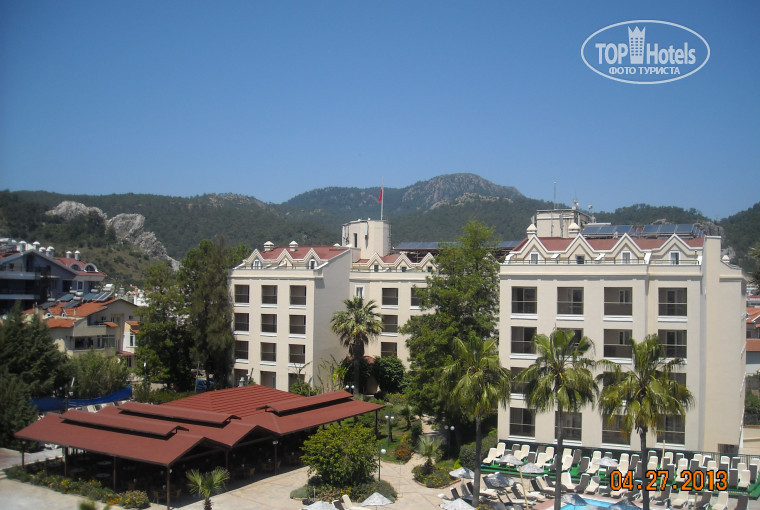 Были в отеле с 27 апреля по 18 мая 2013 года. Летали от Тез тура.В аэропорту Даламан гиды встречали цветами -красные желтые, светло-оранжевые герберы - и восточными сладостямии. В отель нас приехало с самолета 6 человек, я с ребенком и компания молодежи. Первый заезд в отель-по приезду угощали шампанским и сразу заселили в номер,не ждали 14.00.Номер стандартный, с видом на бассейн, конечно потом, с приездом других туристов+музыка+анимация было шумновато,но привыкли, дверь на балкон была открыта всегда, кондей не включали. Погода была отличная. Очень порадовала гид Индира - компетенный и ответственный человек. Большое ей спасибо!!! Мармарис- очень красивый город.Мы его обошли вдоль и поперек.