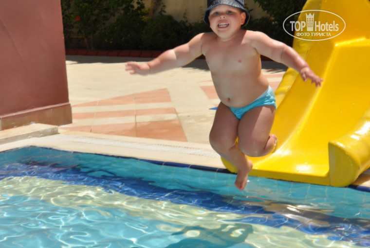 Отдыхали в отеле 11-23 мая 2013г. 2-е взрослых с 2-мя детьми (3 года и 10 мес.). Персонал отеля очень доброжелателен, администратор отеля постоянно общается с отдыхающими, к ней можно обратиться с любым вопросом. Стоило сказать, что около детского бассейна скользко, утром постелили покрытие.