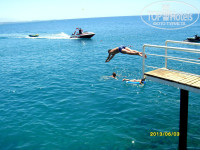 Про то, что в этом отеле нет пляжа, мы знали заранее, тщательно изучив информацию об отеле еще дома.Так что отсутствие пляжа нас не смущало, а детей наших( одному 7 лет, другому 13) , даже радовало, ныряли с пирса.