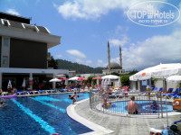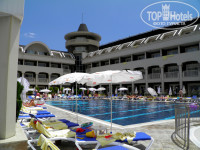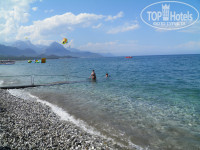 У отеля 2 пляжа - галечный и песчаный. До первого идти минут 7, до второго - минут 15. Между отелем и пляжами ходят бесплатные "шаттлы" - микроавтобусы, расписание движения которых есть на ресепшене. Полотенца для пляжа выдаются в отеле (на 1-ом этаже, в торговой зоне). Проблем с лежаками ни на галечном, ни на песчаном - нет. Все напитки на обоих пляжах - только платные.