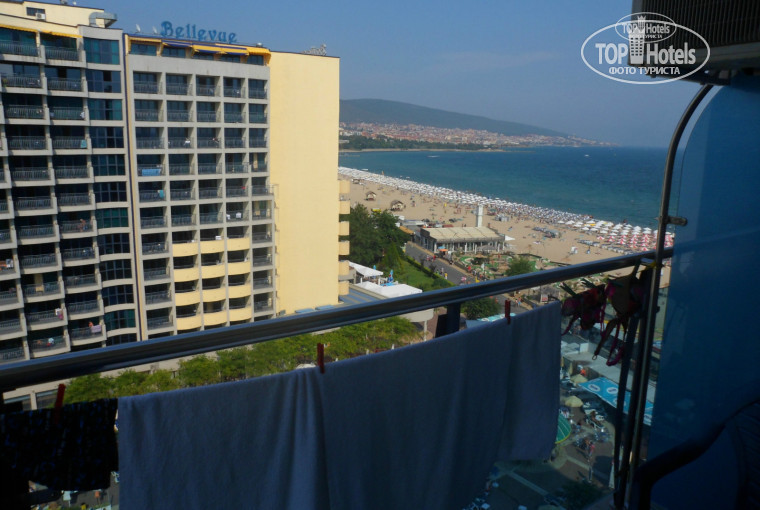 На балконе два стула и столик. Все номера с видом на море, у нас был боковой вид, у родителей прямо на море. Балконные перила прозрачные, а у нас был 7 этаж, довольно страшно. Тем кто боится высоты будет не по себе. Лучше боковой вид на море, в номере тогда практически не бывает прямых солнечных лучей, не так жарко и конечно меньше шума. Мы даже кондиционер не включали а спали с открытым балконом. Вот родителям не повезло: 3 этаж и балкон выходил на уличный бар-караоке. Музыка заканчивалась только в 2 ночи. К концу отдыха папа хотел залить им проводку, чтобы это наконец прекратилось.