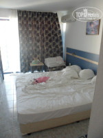 Так как нас было 4 взрослых, мы смогли оценить два разных номера в разных частях гостиницы. Номера небольшие. Прихожей почти нет. Ванная комната крошечная. Унитаз а рядом сразу душ за шторкой, бортиков нет, и вся вода вечно заливала и пол в ванной и даже могла в коридор натечь. Все довольно убого в номере, кровати по удобству нормальные, две тумбочки, столик, пуфик, холодильник, кондиционер, телевизор очень маленький, но русские каналы были. То, что очень не понравилось - Кафель на полу во всем номере. Босиком ходить было невозможно, повсюду был песок, который потом оказывался и в кровати. Даже при каждодневной уборке с чаевыми, грязь была страшная. Порвала полотенце и сама мыла пол. Ну я не могу так по песку ходить, это же не пляж. Уборка не из лучших, все время летали комья пыли и см.выше песок.