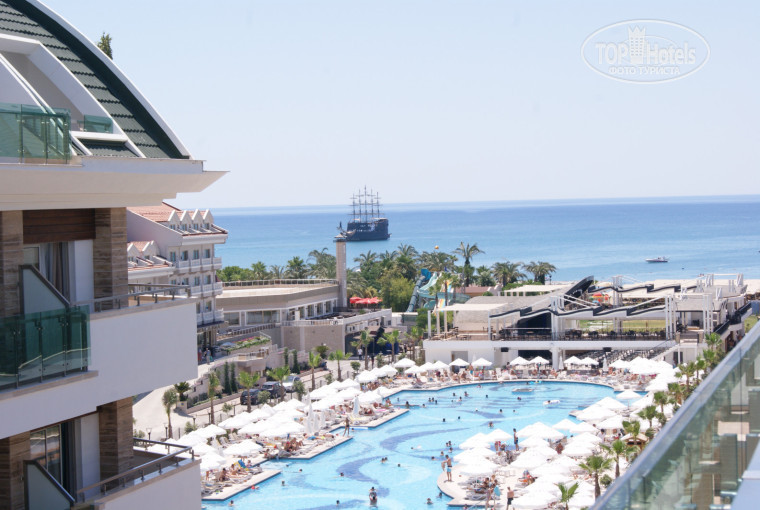 Заселение: в отель мы приехали в 10 утра, заселили нас сразу же. Номер был в 3 корпусе на последнем этаже, вид на бассейн и море, чуть дальше бассейна. Шум от анимации нам не мешал). Принесли детскую кроватку - манеж. Кроватка не очень удобная - не было матрасика, но мы положили туда покрывало, наматрасник, полотенца - получилось не плохо.
