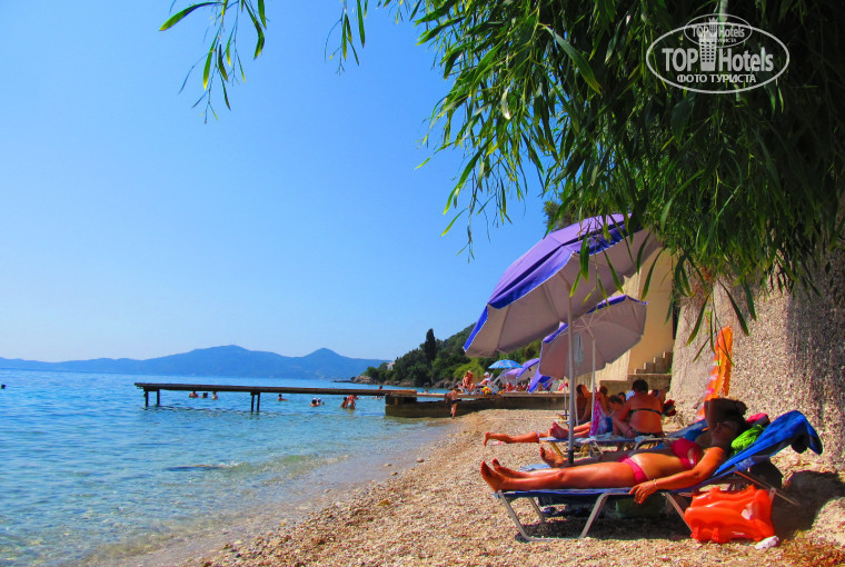 пляж узкий каменистый, конечно не детский и не для пенсии. солнышка в 18-00 там уже нет совсем Хнык! кому нужны шикарные километровые песчаные пляжи поезжайте на север острова в Роду. лежанки бесплатные но занимать с утра пораньше. мы заняли один раз, о потом поняли что лежать весь день на пляже не для нас.