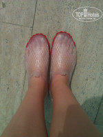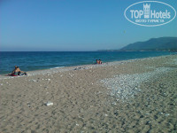 5)ПЛЯЖ, МОРЕ И ТЕРРИТОРИЯ: это , я считаю, самое главное. Территория отеля красивая, чистенько, клумбы подстрижены, но не прогуляешься вечером. Просто негде гулять, разве что дойти до дальнего корпуса. ПЛЯЖ. Идти до него минут 5-7. Через дорогу рядом с магазинчиками, так что каждый раз слышишь "дэвушка красавица, заходи, посмотри, скидку дам". Пришли. Сначала мы подумали что это не тот пляж. Но когда нам сообщили что это то, что мы заказывали, мы очень расстроились. Ребят, галька гальке рознь. Там был грязный песок, или скорее даже пыль с дороги, перемешанный с окурками и остренькими камушками. Заходы в море строго определены; узкие дорожки, которые очищены от валунов. В остальных местах просто глыбы, по ним не пройти, есть на них какие-то наросты, царапающие ноги. особенно когда волна, ты падаешь. Синяков видели много. Купили для плавания тапочки с цветной подошвой, закрытые (купили разные, эти лучше всех. 10$) . Море утром чистейшее, вечером всегда прибивало мусор из моря. Лежаки... 50% сломаны. Есть те , на которых даже невозможно лежать, а есть такие, которые просто не поднимаются. Зонты старые, скрипят, я боялась что он на меня упадет и я умру. А еще зонты низкие и я часто ударялась при своем 170 см росте. Разумеется, делать там нечего. Мы лежали и читали все время. Скатались на банане. Уборкой пляжа они называют то, что утром проходит человек с пакетиком и собирает мусор. Хотя после этого остаются и бутылки, и окурки и тд. Разумеется, проносить напитки из отеля с собой нельзя. Брали только бутылку воды. ДИКИЙ ПЛЯЖ - ребят, топать на другой конец пляжа далеко влево. Там строят новый отель, и там много рабочих-турков, которые вообще не контролируются. Нам с мамой стало страшно там оставаться вдвоем, мы просто убежали оттуда. Да, там больше песка, чище, лежаков нет и не надо, заход в море такой же. Не стоит оно того.