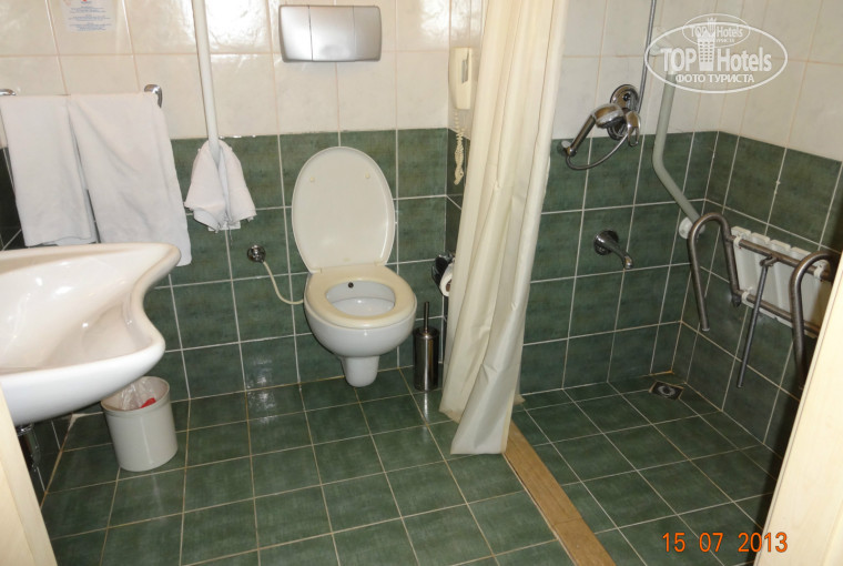 И... номер оказался на троих (то есть вместо второй кровати в детской комнате стоял шкаф), балкона не было (т.е. французский). И номер вообще-то оказался для инвалидов, т.к. в санузле на стенах поручни, а в душевой - сиденье. Но в этом номере были и свои плюсы: он просторный и душ снимается со стены)))). Пошли мы с мужем номер менять. На рецепшене сказали, что свободных номеров нет. Девушки из ТУИ посоветовали нам обратиться к Альберту (он занимается вопросами расселения). Он всё разузнал для нас и пришел с такой вестью, что сейчас нам действительно не могут поменять номер, но завтра нам 100% его поменяют, а сейчас для ребенка принесут раскладушку))))). На том и договорились.
