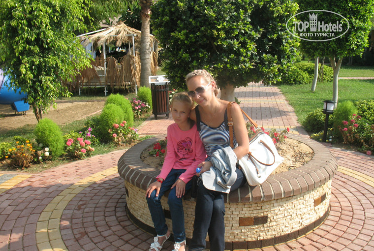 Отдыхала в этом отеле с дочкой 9 лет, в июле 2013 г. , в Турции, как и за границей мы были впервые. Не скрою, было очень много опасений - из-за недавней политической обстановки там. Отель я выбирала по рейтингу и отзывам на TopHotels. Все сомнения рассеялись сразу по прилету в Турцию - очень доброжелательный, вежливый народ, никаких ни задержек, ни проволочек, все очень организованно - туроператором у нас был ANEX Tour. Брала экскурсии в Океонариум и однодневную по Памуккале в отеле, у нашего гида - уличные экскурсии я брать не рискую, считаю что лучше переплатить 20$ - 30$ зато едешь в комфортабельном автобусе, с двумя красавцами-водителями, в отеле ланч соберут в дорогу, отвезут и привезут прям к порогу отеля. Очень впечатлил нас своими знаниями и рассказами о Турции гид-историк от ANEX Tour - Мухамет! Респект и уважение ему!!!