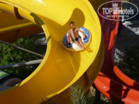 Когда катился с голубой горки (которая высокая на башне А) сильно ударился бедром о ступеньки, так как ватрушка перешла в глиссирование и я проскользил весь бассейн. Будьте аккуратней. Валитесь с нее сами. Внутри первой горки-змейки на сильно надутой ватрушке подзакрутило и я быстро понял зачем на горках без ватрушек выдают маты: на жаре вода на стенках горок (там где она не течет) моментально испаряется, и если проскользить по сухой стенке кожей, моментально обожжешься.