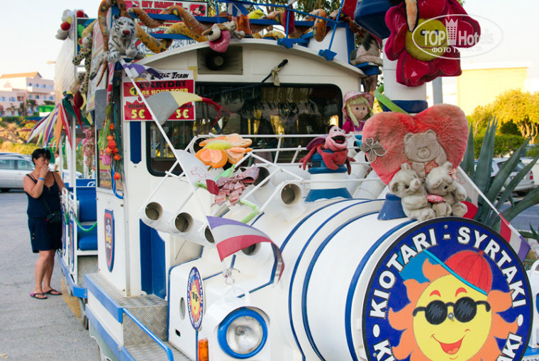 В Киотари - 2-3 км, ходит сухопутный поезд от отеля - экскурсии ровно в 2 раза дешевле, чем у отельного гида (на счет качества не скажу, там не брали). Множество таверен на любой вкус.